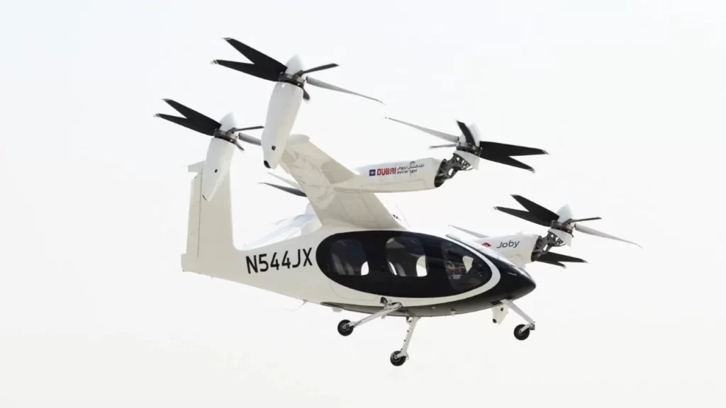 Joby Aviation’s flying taxi is an electric vertical takeoff and landing (eVTOL) aircraft designed to offer efficient, eco-friendly air travel within urban environments. It will operate in Dubai, reducing travel times and bypassing traffic.
