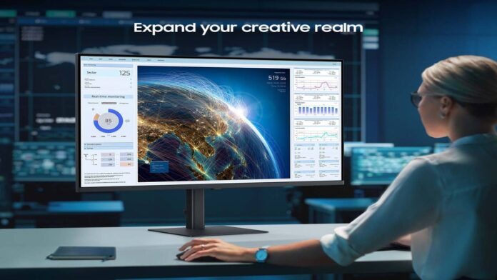 Samsung 37-inch ViewFinity S8 4K monitor features laptop charging, LAN connectivity, and productivity-focused multitasking capabilities.